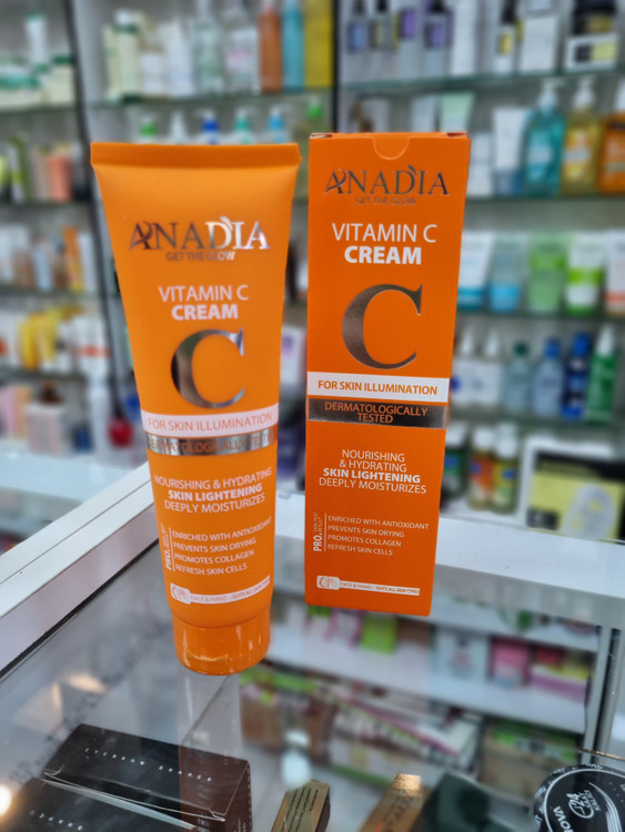 کرم آبرسان حاوی ویتامین سی آنادیا مرطوب کننده پوست آبرسان و احیاء سلول های پوستی آنتی اکسیدانی قوی تحریک کننده تولید کلاژن روشن کننده و شفاف کننده رنگ پوست حجم 150 میل