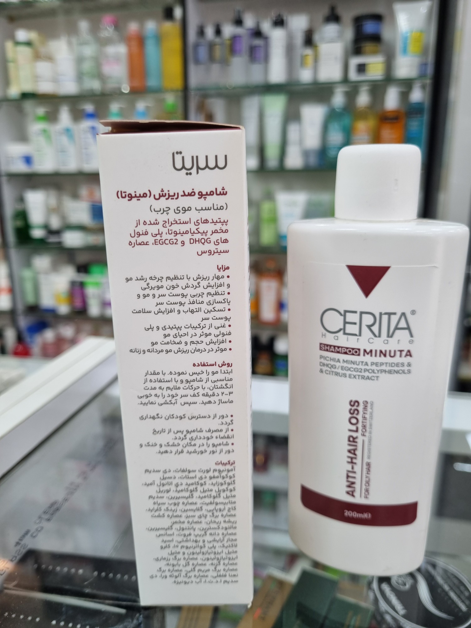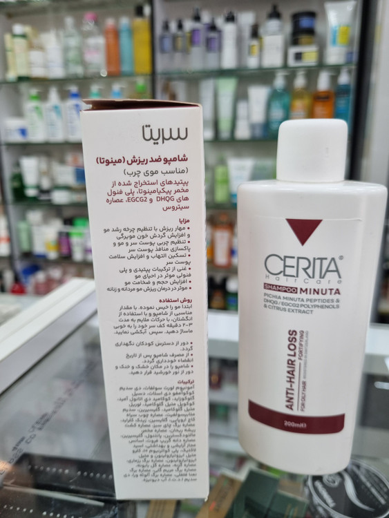 - شامپو مینوتا سریتا موهای چرب حاوی ترکیبات پلی فنولی DHQG و EGCG 2